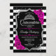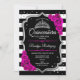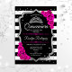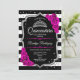 Convite para comemoração da Quinceanera, cor-de-rosa-prata. Apresenta faixas, fontes de script, rosas rosa-quente, tiara e confetti. Design cor-de-rosa com falso brilho. Perfeito para uma elegante celebração de glam.