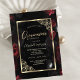 Convite Quinceañera Preta com Quadro Dourado das Rosas ver