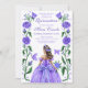 Este convite elegante para a quinceanera apresenta uma menina num vestido de princesa espantoso com um grande arco e tiara. Há uma fronteira de rosas roxas e borboletas lilás. A fonte do script é elegante para um evento formal. Você pode mudar todo o texto para se adequar ao seu evento. O trabalho de arte é desenhado digitalmente no Procreate em um estilo de aquarela digital. Veja toda a coleção correspondente. Toda a trabalho de arte é ilustrada e protegida por direitos autorais por Kaitlyn Thomas.
