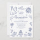 Para a jovem que está comemorando sua Quinceanera. Este doce convite à coroa, borboleta, giro, princesa floral tiara é moderno e caprichoso. Este convite da Quinceanera está em azul e branco e oferece uma reviravolta doce, moderna, divertida e elegante no convite da Quinceanera. O design é giro e divertido e vai colocar o palco para uma noite realmente divertida. Este convite da Quinceanera pode ser personalizado para incluir os detalhes do seu evento.