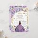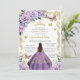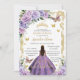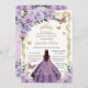 Convite Quinceañera Purple Rosa Floral Dourada Princesa
