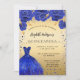 Convite Quinceanera real de ouro azul vestes florais luxo