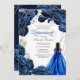 Convite Quinceañera Regal Royal Blue & Silver com Gown