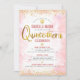 Orgulhe-se, alegre-se e mostre o marco da Quinceañera de sua filha com este convite sofisticado e personalizado! Envie este convite de festa impressionante, simples, festivo e moderno para um evento inesquecível. A caligrafia em falso foil dourado brilhante e pontinhos de glitter de confete, juntamente com a tipografia sans serif rosa bege escuro, sobrepõem um fundo de aquarela rosa bege claro suave. Personalize o texto personalizado com o nome de sua filha, bem como outros detalhes da igreja e do local da festa. Ótimo para a jovem fashionista que ama brilho e glamour modernos e garantido para adicionar diversão estilosa ao seu marco especial!