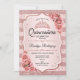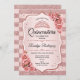 Convite para comemoração da Quinceanera rosa gold. Apresenta faixas, fontes de script, rosas rosa-pinceladas, tiara e confetti. Design clássico com ouro de rosa brilhante falso. Perfeito para uma elegante celebração de glam.