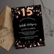 Convite Quinceanera rosa dourada estrelas luxo preto