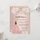 Convite Quinceanera rosa dourada flores de luxo