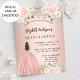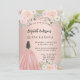 Um convite moderno, na moda e glamouroso para uma Quinceañera, festa de aniversário 15. Um fundo rosa de ouro com flores cor-de-rosa pinceladas, uma garota vestindo um vestido de bola. O nome é escrito com um moderno estilo escrito à mão. Personalize e adicione os detalhes da sua festa.