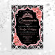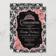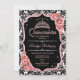 Convite à celebração de Quinceanera, preto de ouro rosa. Apresenta cor damasco, fonte de script, rosas rosa, tiara e confetti. Design clássico com ouro de rosa brilhante falso. Perfeito para uma elegante celebração de glam.
