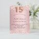 Para uma elegante Quinceañera, 15 festa de aniversário. Um plano de fundo de gradiente cor-de-rosa. Decorado com confete. Personalize e adicione um nome e detalhes da parte. O nome é escrito com um script de estilo manuscrito. O número 15 é escrito com uma fonte no estilo do balão.