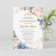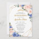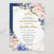 Convite Quinceañera Royal Blue Blush Floral Dourada Tiara