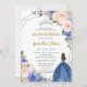 Convite Quinceañera Royal Blue Blush Floral Silver Tiara
