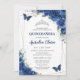 Convite Quinceañera Royal Blue Floral Butterflies Aniversá