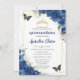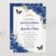 Convite Quinceañera Royal Blue Floral Butterflies Aniversá