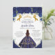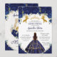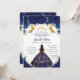 Convite Quinceañera Royal Blue Floral Princesa Dourada Cav