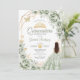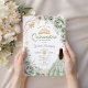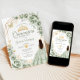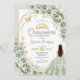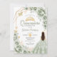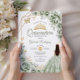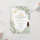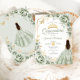 Convite Quinceanera Sage Green Vestido Floral Dourado