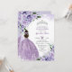 Este convite de 16 anos da Quinceañera / doce apresenta rosas de lavanda roxas de cor aquática floral e uma garota com um lindo vestido roxo lilás. Personalize-o com seus detalhes de forma fácil e rápida, basta pressionar o botão personalizar para reorganizar e formatar o estilo e a colocação do texto. Também excelente para o 18º aniversário, Bat Mitzvah, Batismo, Christening e mais ocasiões! c) O Feliz Cat Studio