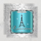 Convite Quinceanera Teal Blue Silver Tiara Eiffel Torre 2