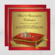 Belo travesseiro vermelho e ouro com o convite de festas de tiara Quinceanera. Esta elegante princesa Quinceanera é facilmente personalizada para o seu evento simplesmente adicionando os seus detalhes no estilo de letra e na redação da sua escolha.