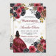 Convite Quinceanera Vermelha e Preto Floral Elegante