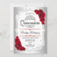 Convite Quinceanera - Vermelho Branco Prateado