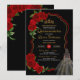 Convite Quinceanera, Vestido Elegante Dourado e Preto da r