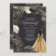 Convite Quinceañera w Rosas Pretos, palhaço Dourado e bril