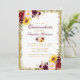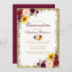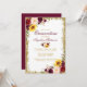 Quinceanera Watercolor A Borgonha Marsala Floral inclui rosas de burlões, rosas vermelhas, rosas cor-de-rosa, girassóis e verde. Cartão de Convite Dourado para Lâmpadas - Volta para Borda