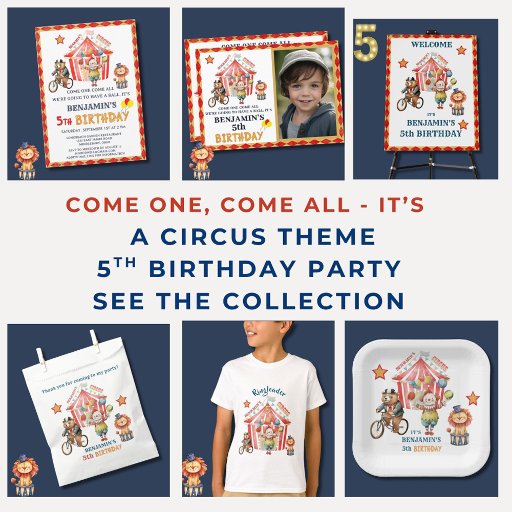 Que forma excelente de começar uma celebração com este convite de moda, encantador e único para a aquarela - um circo temido por 5 de aniversário. O convite é fácil de personalizar. Vocês podem ver o nome de Benjamin na tenda grande e os "amigos" do circo estão lá convidando todos para vir a este importante evento divertido. A design apresenta um grande topo com animais de circo e um palhaço malabarista. Então, pegue seu ingresso e se prepare para uma festa de aniversário muito especial. Qualquer pergunta design apenas envie um bate-papo e ficaremos felizes em ajudar.