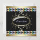 Convite de Quinze Anos preto dourado Arco-íris. Peças coordenadas disponíveis mediante solicitação por e-mail.