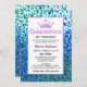 Este convite de Quinceañera chique e elegante apresenta um deslumbrante design de brilho azul com luzes bokeh e uma foto pessoal no verso. A frente exibe uma moldura de brilho ombre roxo elegante contra um fundo branco crocante, adicionando um toque de glamour moderno. Perfeito para a princesa Quinceañera que está por dentro da moda e ama uma mistura de brilho e sofisticação. Este convite define o tom para uma celebração glamorosa que ela nunca esquecerá.
