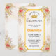Celebre o aniversário de 15 anos da sua garota espanhola com um convite que capture perfeitamente a essência da Quinceanera, a tradicional festa de 15 anos. Este convite elegante e moderno apresenta um design floral em aquarela em tons de violeta e dourado, com detalhes em renda delicada que adicionam um toque de sofisticação ao design.