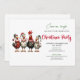 Convite Quirky Watercolor Chickens Red Green Christmas