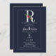Convite R Monograma Último Casamento Floral Azul Moderno I