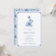 Este design de convite de festas apresenta um coelho de padrões de aquarela azul e branco e um backer correspondente. O padrão foi originalmente pintado por mim em aquarelas antes de ser digitalizado. É inspirado pelo tipo de padrão que você pode encontrar em frascos de gengibre antigos.