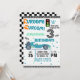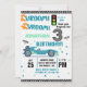 Rev up the excitement with this editable Race Car Birthday Invitation! Featuring the fun phrase “Vroom… Vrooom Start Your Engines For”, bold tire tracks, and a cool racing car in black, blue, and green, this invitation is perfect for boys ages 2 to 10. Easily customize the child’s name, age, date, time, and party details. Ideal for racing lovers and high-speed birthday themes!