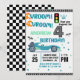 Rev up the excitement with this editable Race Car Birthday Invitation! Featuring the fun phrase “Vroom… Vrooom Start Your Engines For”, bold tire tracks, and a cool racing car in black, blue, and green, this invitation is perfect for boys ages 2 to 10. Easily customize the child’s name, age, date, time, and party details. Ideal for racing lovers and high-speed birthday themes!