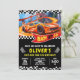 Aumente o entusiasmo com este convite de aniversário de carro de corrida! Apresentando um design dinâmico com trilhas de corrida vibrantes, um carro rápido e bandeiras de controle, este convite é perfeito para uma emocionante celebração de 6.