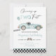 Este convite adorável apresenta um carro azul de corrida de aquarelas.