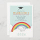 Um tema de graduação em pré-escola ou jardim de infância para crianças do arco-íris com ilustração de um arco-íris, céu azul e boné de formatura.