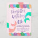 Rainbow Mermaid, Celebre conosco, Sob o convite do mar Whimsical e divertida sob o tema do mar Cartão modelo de convite de aniversário com com uma cauda de sereia colorida do arco-íris. O texto no topo diz "Aniversário do nome". Festa divertida para o aniversário de uma menina. não se esqueça de personalizar o design para o seu gosto.