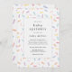 Um convite para bebês borrifados apresenta borbulhas coloridas. Personalize com seu texto. Clique em "Personalizar mais" para editar o estilo, o tamanho e a cor da fonte, se desejar.