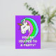 Esta design de festa divertida apresenta uma cor de fundo brilhante e um feliz unicórnio arco-íris. Personalize com seu próprio nome, idade e informações! Projetado no belo estado de Washington, EUA, por um artista independente.