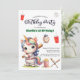 Um design adorável com um unicórnio giro do arco-íris jogando beisebol e caligrafia elegante! Você pode personalizar este convite com seus próprios detalhes.