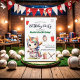 Um design adorável com um unicórnio giro do arco-íris jogando beisebol e caligrafia elegante! Você pode personalizar este convite com seus próprios detalhes.