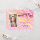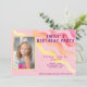 Convite de aniversário de fotos colorido para meninas. Convite de aniversário arco-íris com ondas coloridas e estrelas num fundo cor-de-rosa. Você pode personalizar todas as informações sobre este modelo de convite de aniversário. Carregue sua foto. Perfeito como convite de festa de aniversário para garotas.