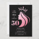 Convite Rainha Coroa rosa-reluzente Preta 50º Aniversário