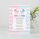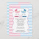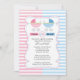 Gênero bonito Revelando convite para chás de fraldas. Será cor-de-rosa ou azul? Um menino ou uma menina? Nosso convite para o chá de fraldas moderno, com um carrinho de bebê rosa e uma carruagem azul para bebês, em um quadro de rico com um fundo cor-de-rosa, azul e branco. Visite nosso compro para ver nossa adorável seleção de gênero revelando convites de festas para bebês e convites para chuveiros para bebês neutros em gênero.