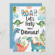 Perfeito para qualquer garoto que ama dino! Este convite de dinossauro aquarela traz diversão e entusiasmo à sua vibração do partido. (Trabalho de arte Gerado por AI)