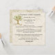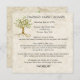 A trabalho de arte para este elegante, formal, mas um pouco rústico convite para convites de festas de reunião de família é a água da mão colorida por Audrey Jeanne Roberts. O fundo é um parchmente antigo do estilo vintage. A espiral tem coração no centro de seu tronco, seus ramos são espirais e no final de cada galho está um conjunto de folhas verdes.